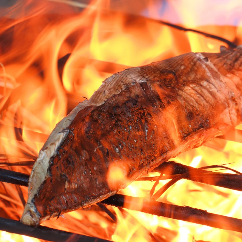藁焼きたたきは、一気に高温で焼き上げて旨味を閉じ込めます。カツオの臭味を消し、藁焼きの香りが味を引き立てる伝統の調理法です。